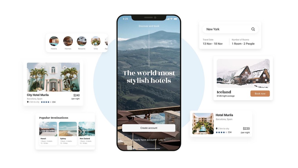 Athens Hotel Booking App Ui kit is a set of mobile app templates for crafting a stylish, contemporary, and user-friendly travel, hotels booking app. This template set is tailored for developers and designers, offers all the essential components and features needed to create an engaging and intuitive app interface. All components are fully customisable, allowing you to update with your own content, fonts, and colours.