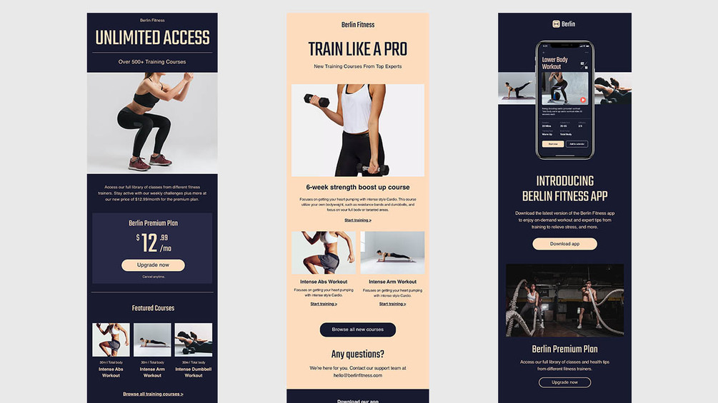 Berlin Fitness App UI Kit is a set of mobile app templates for crafting a stylish, contemporary, and user-friendly fitness app. This template set is tailored for developers and designers, offers all the essential components and features needed to create an engaging and intuitive app interface. All components are fully customisable, allowing you to update with your own content, fonts, and colours.