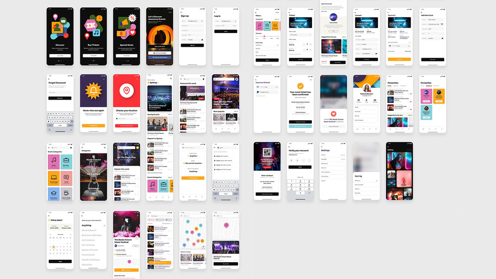 London Events App UI Kit is a set of mobile app templates for crafting a stylish, contemporary, and user-friendly events booking app. This template set is tailored for developers and designers, offers all the essential components and features needed to create an engaging and intuitive app interface. All components are fully customisable, allowing you to update with your own content, fonts, and colours.