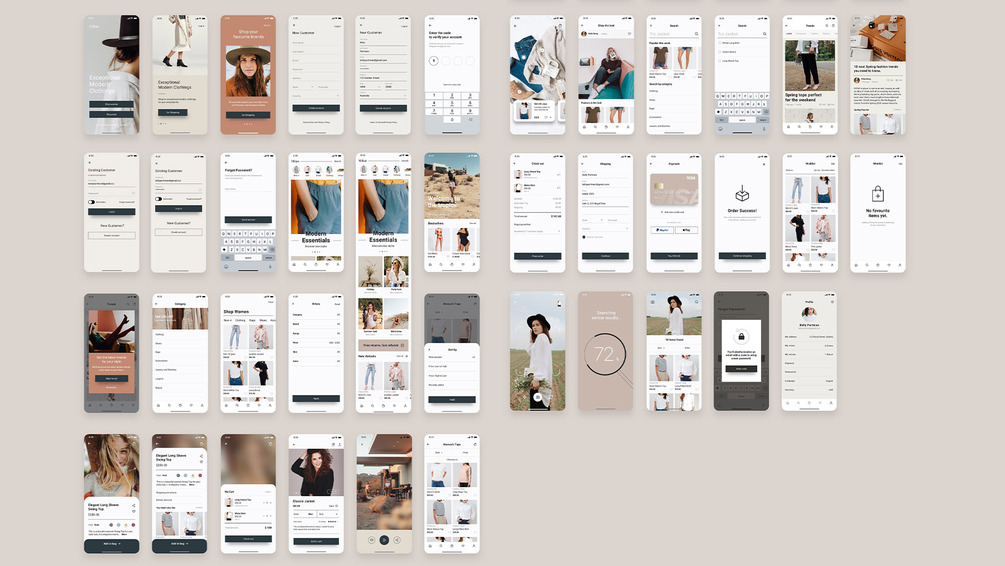 Milan Fashion App UI Kit is a set of mobile app templates for crafting a stylish, contemporary, and user-friendly fashion shopping app. This template set is tailored for developers and designers, offers all the essential components and features needed to create an engaging and intuitive app interface. All components are fully customisable, allowing you to update with your own content, fonts, and colours.